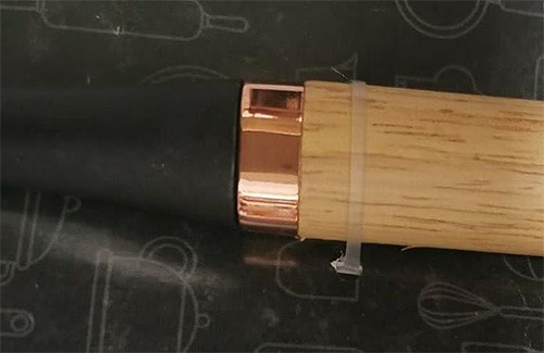 Lastly - the distinguishing feature is the "rose gold jointer." This is the collar at the connection point between the nylon masher and the wooden handle. It's the feature that gave it away and let me track it down. I have strong doubts it is actually gold.